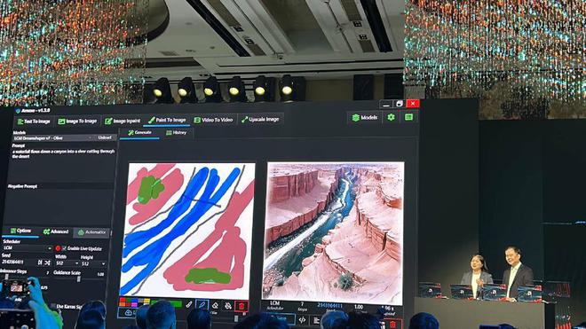 峰会现场,刘军还用内嵌AMD芯片Hawk Point的联想AI PC原型机,展示了AI PC文生图的全过程,并为Lisa Su博士生成了一份带有牡丹花图案的邀请函。