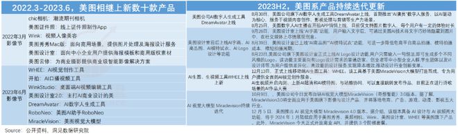 可以看到,2023下半年,美图在已经形成的生产力、消费两大产品矩阵上,把视觉大模型再度进化至4.0版本,且多款产品持续更新迭代。