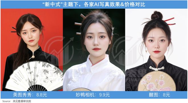 而从各家都有的AI写真功能来看,价格接近,都在10元以下;操作使用上,上传十几张个人照片即可,效果也相差不大,很适合小白。