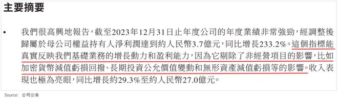 数据显示,2023年总营收27亿,同比增长29%;经调整后净利润达3.7亿,同比增长233.2%。
