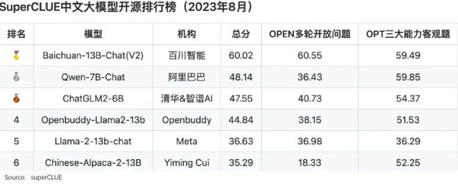 如下图,2023年8月的中文语言理解领域权威榜单CLUE上,排在前三的,都是国内大模型巨头。