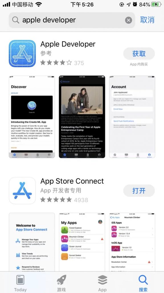 三、在苹果手机App Store搜索Apple Developer并安装上(需要iOS12.4系统以上,不然搜不到这个app)