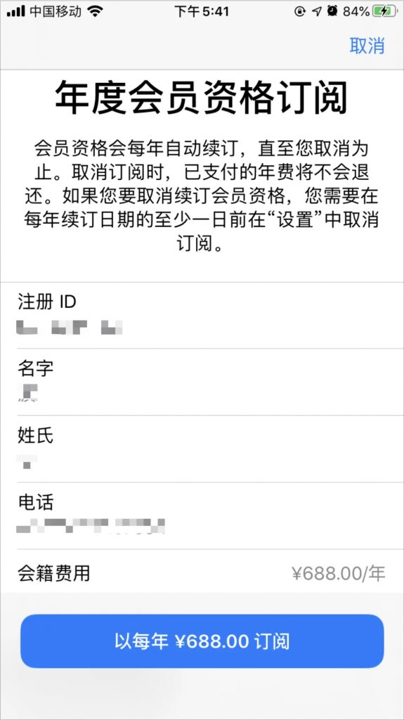 1.如果身份证信息或者企业信息填写有误,则会在同意协议后弹窗联系苹果客服的页面,不能继续完成注册,一旦提交的信息,目前也不能撤销,只能联系苹果客服,联系方式和web端一样,可以选择电话联系,但是最近电话联系的人可能比较多,快的话三五分钟,慢的话据说一个小时都可能没人接;