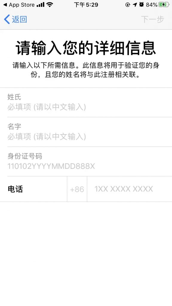 名字用汉字或者拼音写上去(注意写真实姓名,苹果审核可能会核查信息)