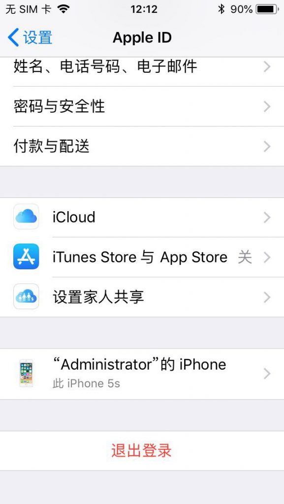 2、进入设置,下拉点击退出登录当前账号,再登录需要开启双重认证的苹果账号。